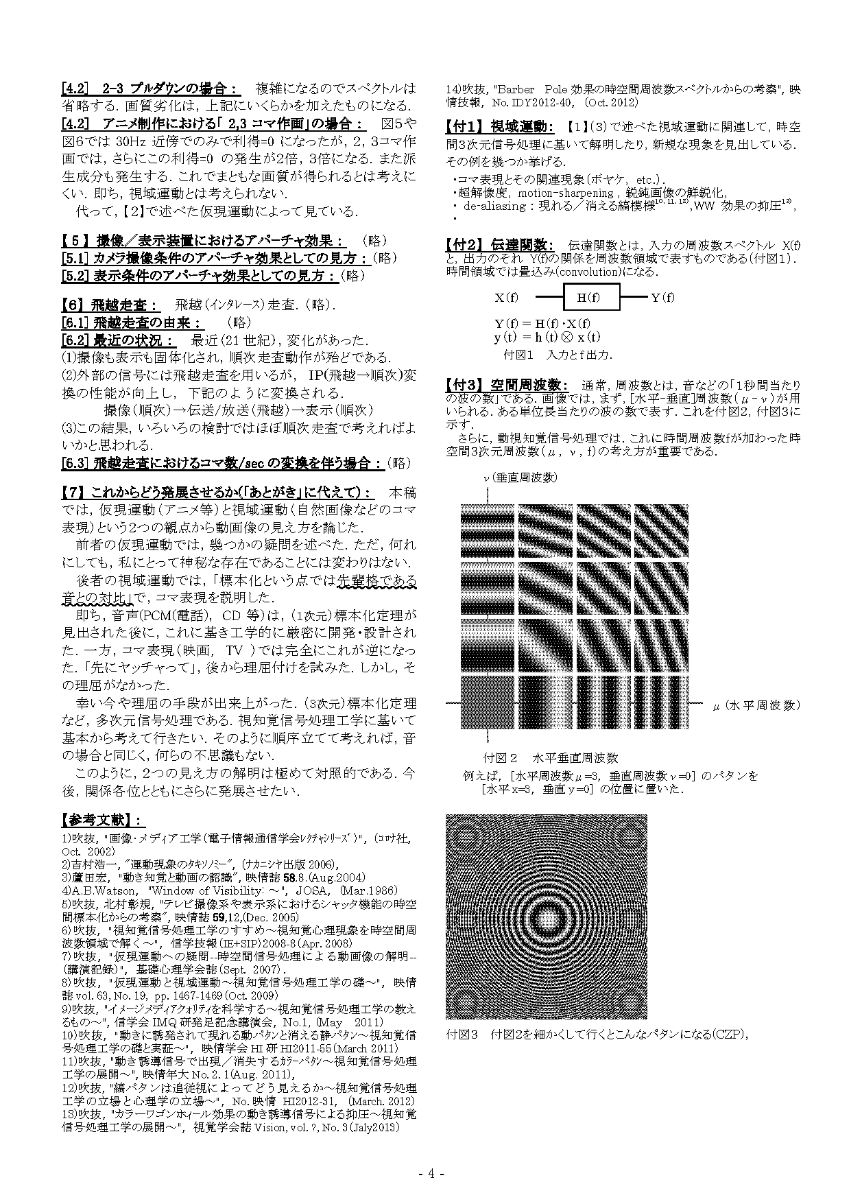 吉村浩一・佐藤壮平(2010)2枚の画像で構成される後戻り感を生まないアニメーション アニメーション研究, 11A, 43-79.