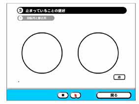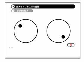 3 たとえば,「3止まっていることの選好」をクリックし,次に「回転円と静止円」をクリックして選ぶと,次のような画面が出てきますので,このトピックの観察を開始するため,以下の手順で進めてください.